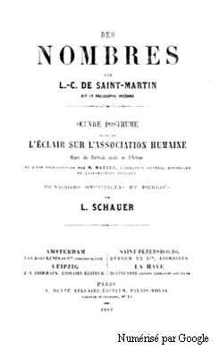 Cependant, à l’examen, les rapports numériques prétendus nous paraissent bien puérils. Passe pour Un : c’est l’Unité, c’est-à-dire la Divinité. Mais pourquoi Deux signifie-t-il la confusion ou le désordre ? C’est qu’il représente la séparation entre l’Unité primordiale et les êtres prévaricateurs. Trois symbolise les choses créées, car elles le furent par une triple action. Quant au nombre Cinq, total de deux et de trois, il n’en faut parler qu’avec une profonde horreur. Un nombre qui associe le désordre à la contingence ne peut être qu’infiniment odieux ; c’est le chiffre même de Satan, et Saint-Martin croira désigner le démon avec assez de clarté en l’appelant « le chef quinaire ». Pour abréger, voici la liste entière des nombres, telle qu’on la trouve dans le Traité de la réintégration :