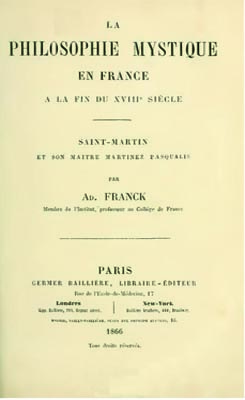 Malheureusement, on ne les connaît guère. En France, tout au plus cite-t-on Saint-Martin, et le plus souvent, sans le lire. On n’ignore pas l’existence de Svedenborg ; Boehme fut étudié par Boutroux (E. Boutroux, Le philosophe allemand Jacob Boehme, Paris, 1888.), mais qui s’en souvient ? Et bien d’autres noms importants ne sont même pas soupçonnés. Qui donc, en dehors de la secte, a écrit sur Martinès de Pasqually ? Le seul Ad. Franck, et encore son livre, qui date de 1862 (La philosophie mystique en France à la fin du xviiie siècle, Paris, 1862.), contient-il des appréciations fort erronées. Et pourtant Martinès de Pasqually joua un rôle considérable ; l'intérêt de son œuvre dépasse celui de nombre de ses contemporains.