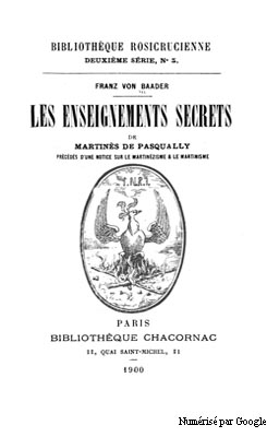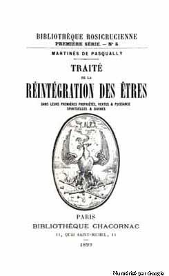 Longtemps, on ne sut rien de la pensée du maître que par celle de ses disciples. Dans sa correspondance avec Kirchberger, Saint-Martin y faisait allusion, mais il avouait n’en pas connaître la substance : « Je suis même tenté de croire, écrivait-il, que M. Pasqu... avait la clef active de tout ce que notre cher B[oehme] expose dans ses théories, mais qu’il ne nous croyait pas en état de porter ces hautes vérités. » (Correspondance de Saint-Martin, publiée par Schauer, Paris, 1862, p. 272.). On pouvait aussi rechercher les doctrines martinésistes dans celles de cet abbé Fournié qui paraît incapable d’avoir innové sciemment en quoi que ce soit. Enfin, Franck avait eu sous les yeux le manuscrit du Traité de la réintégration, de Martinès ; il en avait publié et commenté les premières pages, mais son commentaire est fort inexact. Heureusement, l’ouvrage fut intégralement publié en 1899 ; et, bien qu’inachevé, il suffit à nous donner une idée générale de l’enseignement de Martinès.