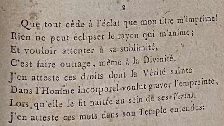 Ceux de nos FF∴ qui sont véritablement attachés aux hautes connaissances de l’Art R∴﮲, trouveront dans chacune des strophes de cette Ode, jusques, même dans chacun des vers qui le composent, une inépuisable matière à de profondes méditations… Heureux les FF∴ qui en découvriront le sens, qui en combineront le développement et en feront une sage et victorieuse application.