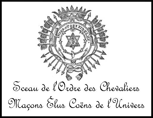 Après avoir donné ces notions succinctes de l'ensemble de la doctrine des Élus-Coens, nous offrirons aux lecteurs quelques détails sur leurs initiations, qui ne seront pas déplacés dans un ouvrage dont le but est de donner, en quelque sorte, le tableau des mystères des sectes maçonniques.