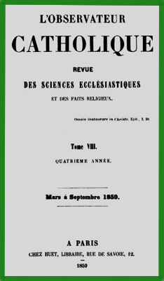 L’observateur catholique, revue des sciences ecclésiastiques et des faits religieux