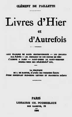 1896 - Clément de Paillette, Livres d'hier et d'autrefois