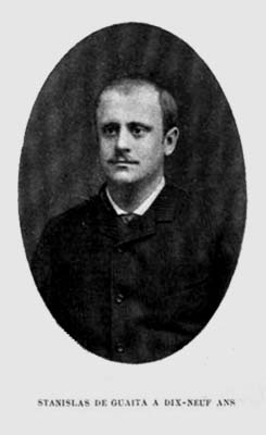 Aristocrate, Stanislas de Guaita se tenait à l’écart des groupes. On ne le rencontrait point dans les réunions ni les loges. Tel le Pontife invisible au fond du Vatican, il maniait de sa retraite les fils de l’Ordre Suprême. Sa présence soupçonnée n’en acquerrait que plus de force et de prestige.