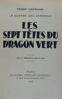 À partir du 28 avril 1933, La Liberté publie, en feuilleton, l'ouvrage de Teddy Legrand, Les sept têtes du Dragon-vert, publilé la même année aux éditions Berger-Levrault. La Liberté le présente ainsi :