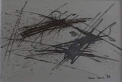 Lors de cette première visite chez Anca, elle me montra également deux petites encres qui retinrent particulièrement mon attention. La première m'a fait penser à Henri MICHAUX par cette écriture spontanée dans tous les sens qui essaie de montrer le dialogue intérieur et non les apparences.